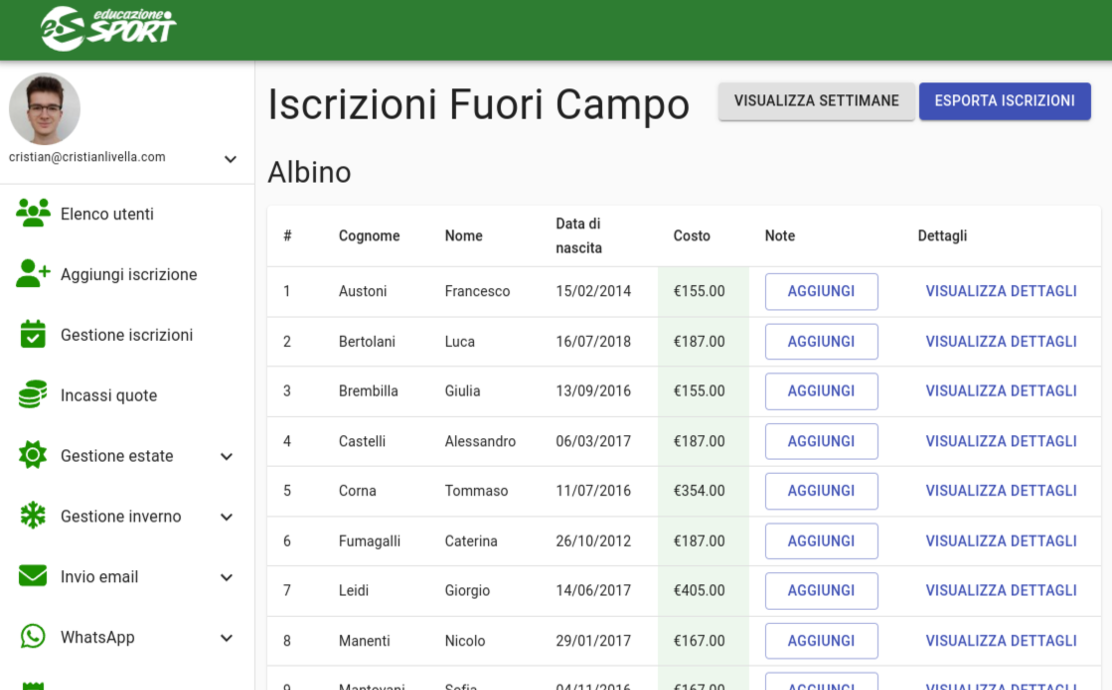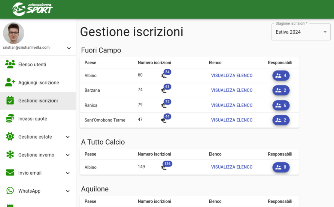 Software gestionale per associazione sportiva, realizzato su misura per Educazione.Sport ASD.