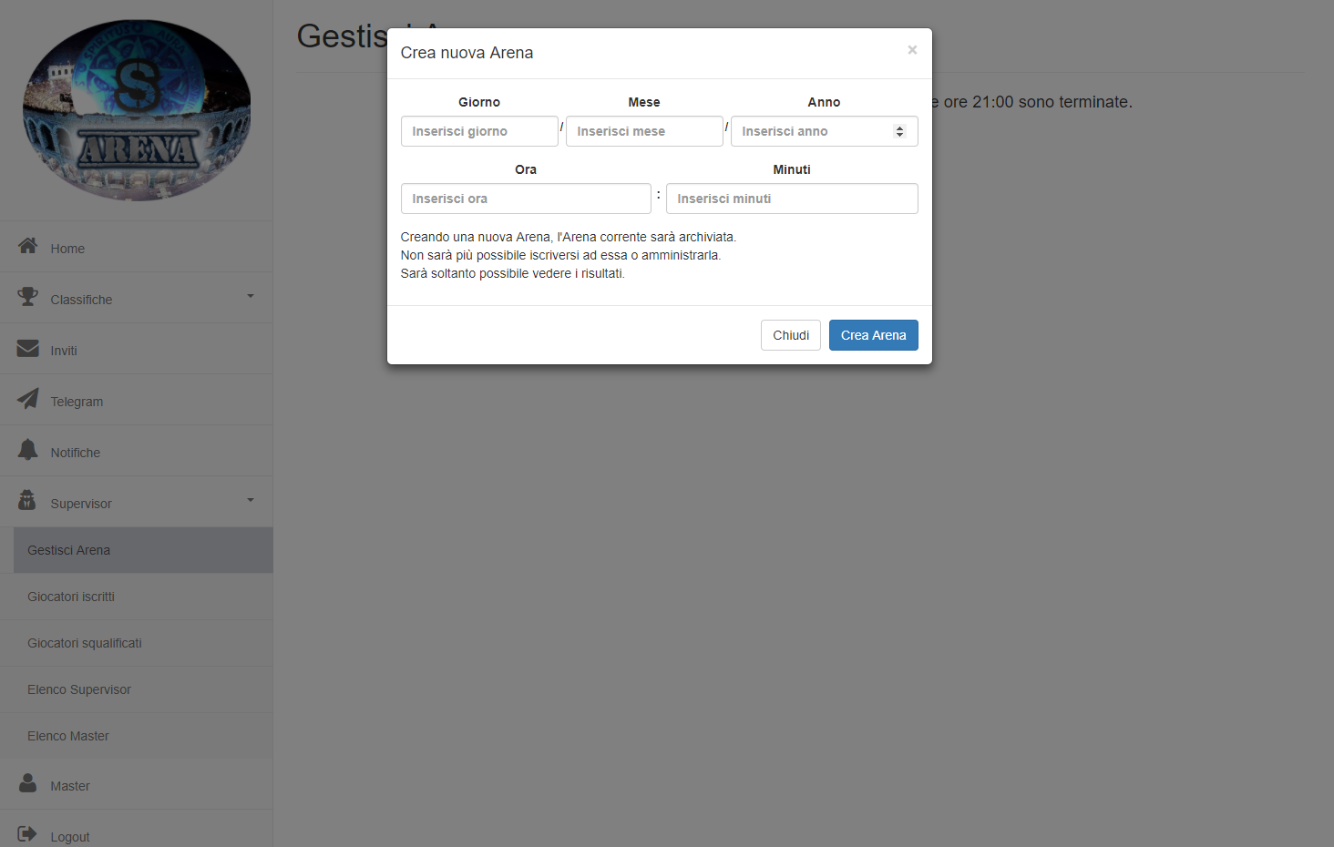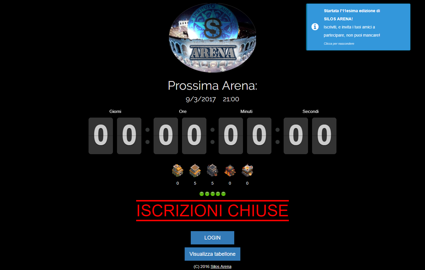 • Una volta aperte le iscrizioni da parte di un Supervisor, ogni utente registrato a silosclash.it (integrazione con Worpdress) può accedere ed iscriversi alla prossima Arena
